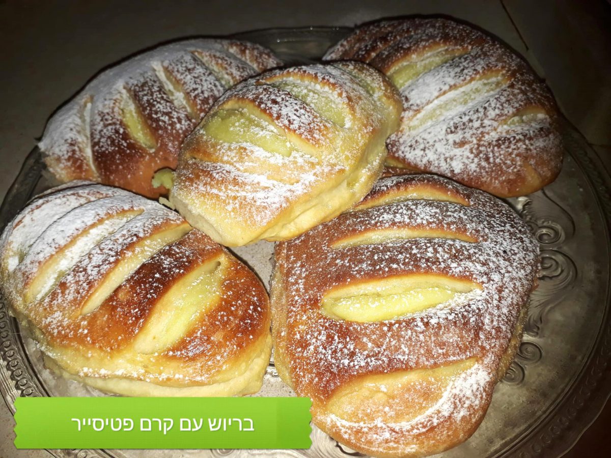 לקרוץ עיגולים, למלא בקרם פטיסייר, מסביב להרטיב את הבצק להניח עליו את העיגול השני, את העיגול השני אנחנו חורצים בקווים ומניחים על הבצק עם קרם הפטיסייר.