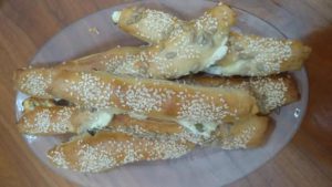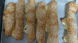 חותכים כדורים מהבצק ומרדדים למלבן ארוך.