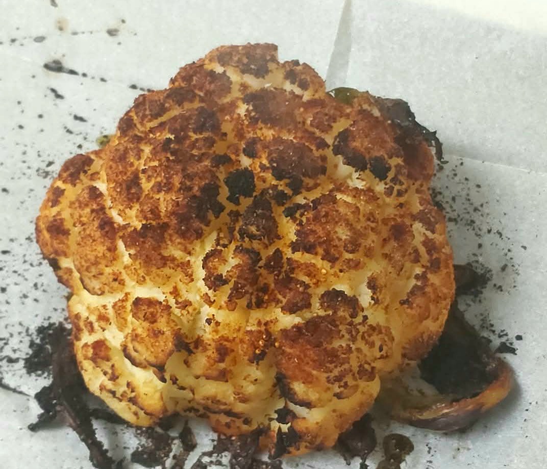 לאחר מכן מזלפים שמן זית בנדיבות ועם ידיים מורחים את הכרובית. מפזרים תבלינים לפי טעם אישי, אני שמתי מלח, פלפל, שום יבש ותבלין פילדלפיה, אפשר לגוון. התנור לחמם 180 מעלות להכניס את התבנית ולאפות עד שמתקבל צבע יפה, שחום