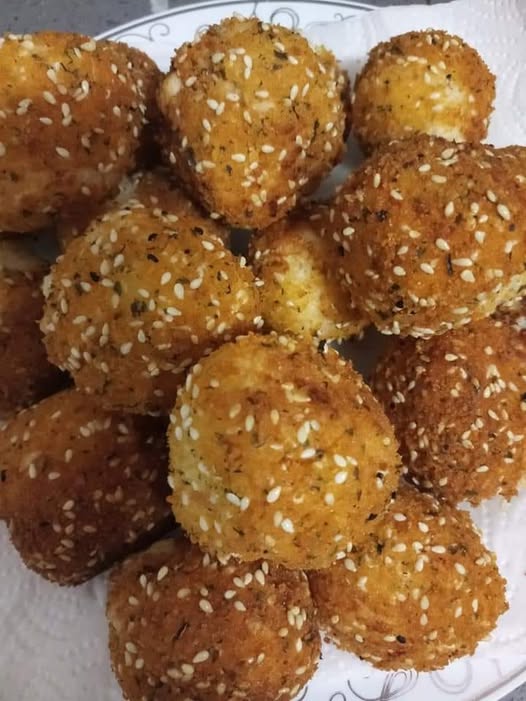 להכין כדורים ולגלגל בפרורי לחם מתובלים ועם הרבה שומשום .