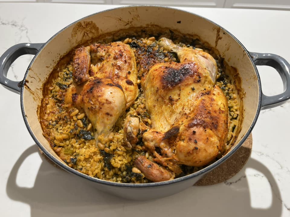 עוף עם בורגול ועשבי תיבול עם צנוברים מנה מהממת לשבת חורפית