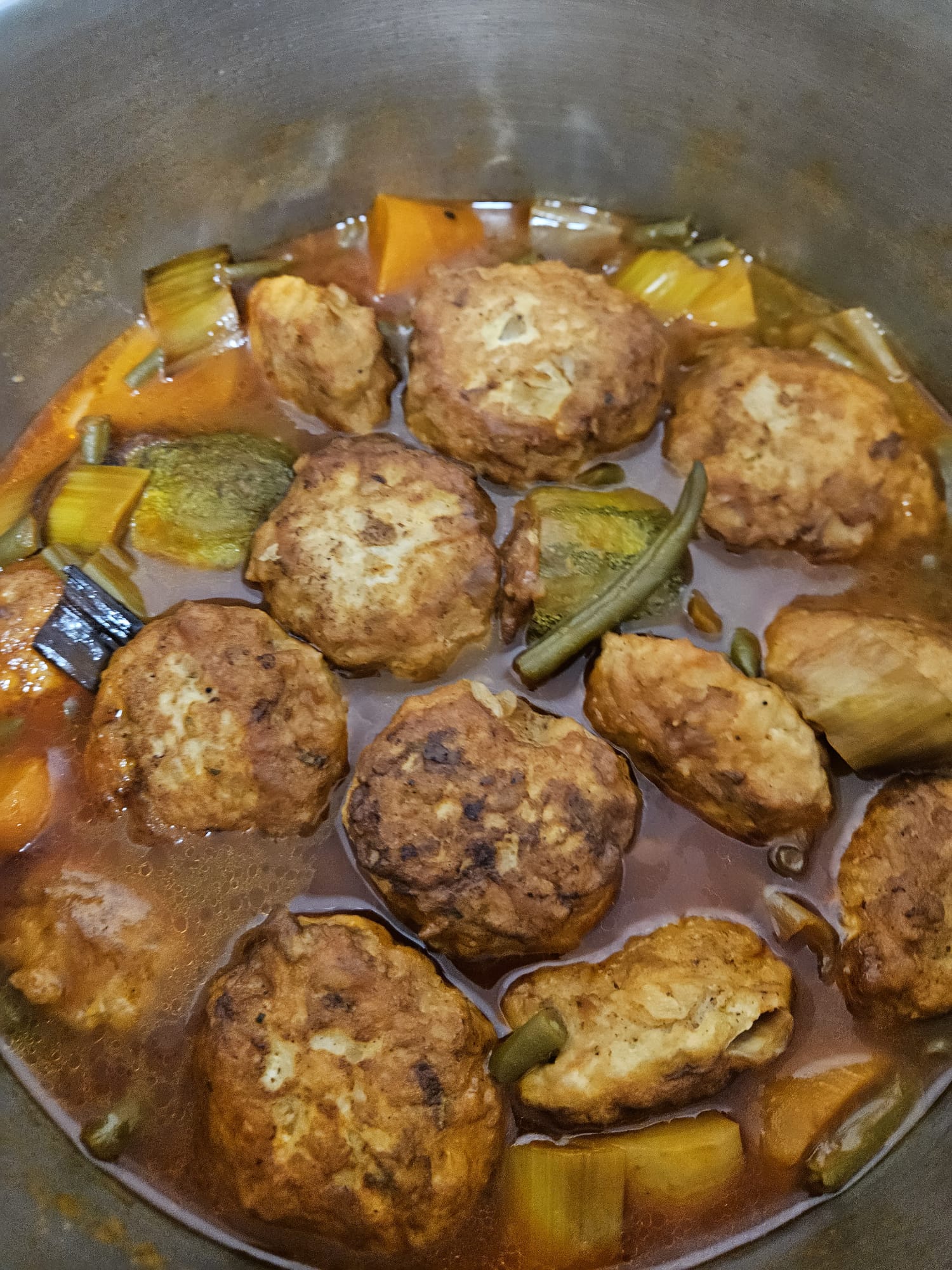 תבשיל ביתי עשיר בטעמים, המשלב קציצות עוף אווריריות