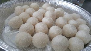 לערבב בקערה יחד עם קרם קוקוס וניל והקוקוס.