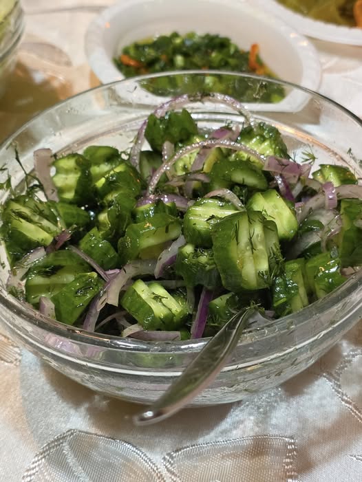 • מעבירים את המלפפונים והבצל לקערת הגשה.