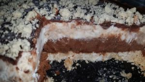 מורחים את מוס החלבה מעל שכבת מוס השוקולד הקפואה.