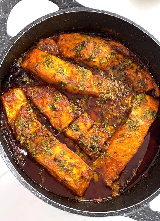 - מוציאים כשהדג צרוב היטב מלמעלה והרוטב סמיך ומבריק.