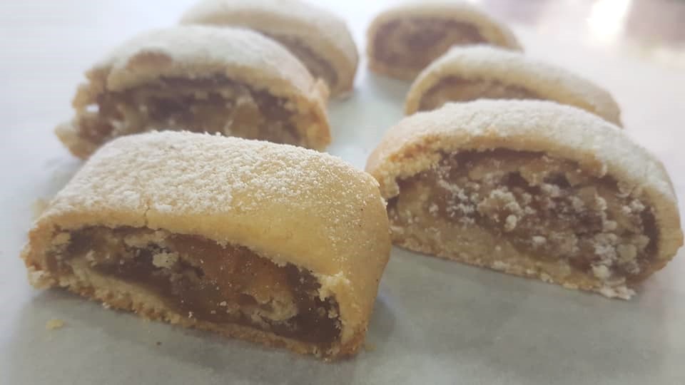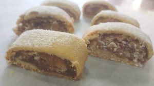 מוסיפים קינמון ואגוזים קצוצים, מערבבים ומקררים לחלוטין (חשוב: לא למלא בצק פריך במילוי חם).