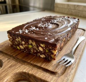 ניזוק מעט פתיתי מלח גס ונעביר לקירור עד התמצקות השוקולד המריר .