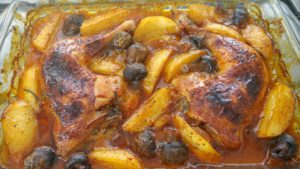 עוף בתנור עם תפוחי אדמה ופטריות
