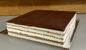 מעל נמרח שכבת קרם וכך הלאה , שכבת ביסקויט וקרם.